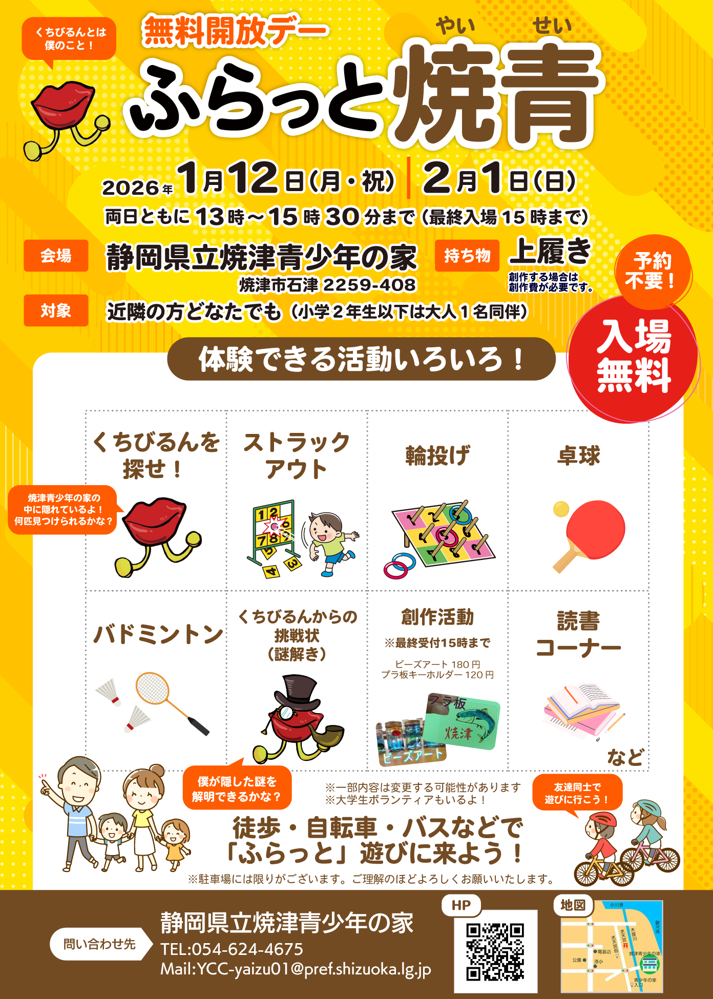 ※本事業は、焼津市、藤枝市、島田市の家庭教育学級に在籍している子とその保護者のみが対象となっております |